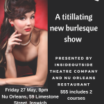 Welcome in 2021 with us at our first event of the year and enjoy some glitz and glamour at our partner venue, Fritzenberger.Put on your ‘Ritz’ and step out in style with InsideOutside Theatre Company and Fritzenberger at our first show of the year ‘Stepping Out.’ Enjoy the glamour and sparkle of burlesque style cabaret performances from Gillian Grace, Tomer Dimanstein, Rachel Matthews and Chloe Boike as you tuck into drinks and food at this ‘Fritzy’ venue. Featuring special guests Asabi E Goodman and Sandra Harman.
